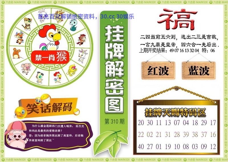 | 302期六肖 | 鸡龙猪马兔猴 | 开:猴22 |